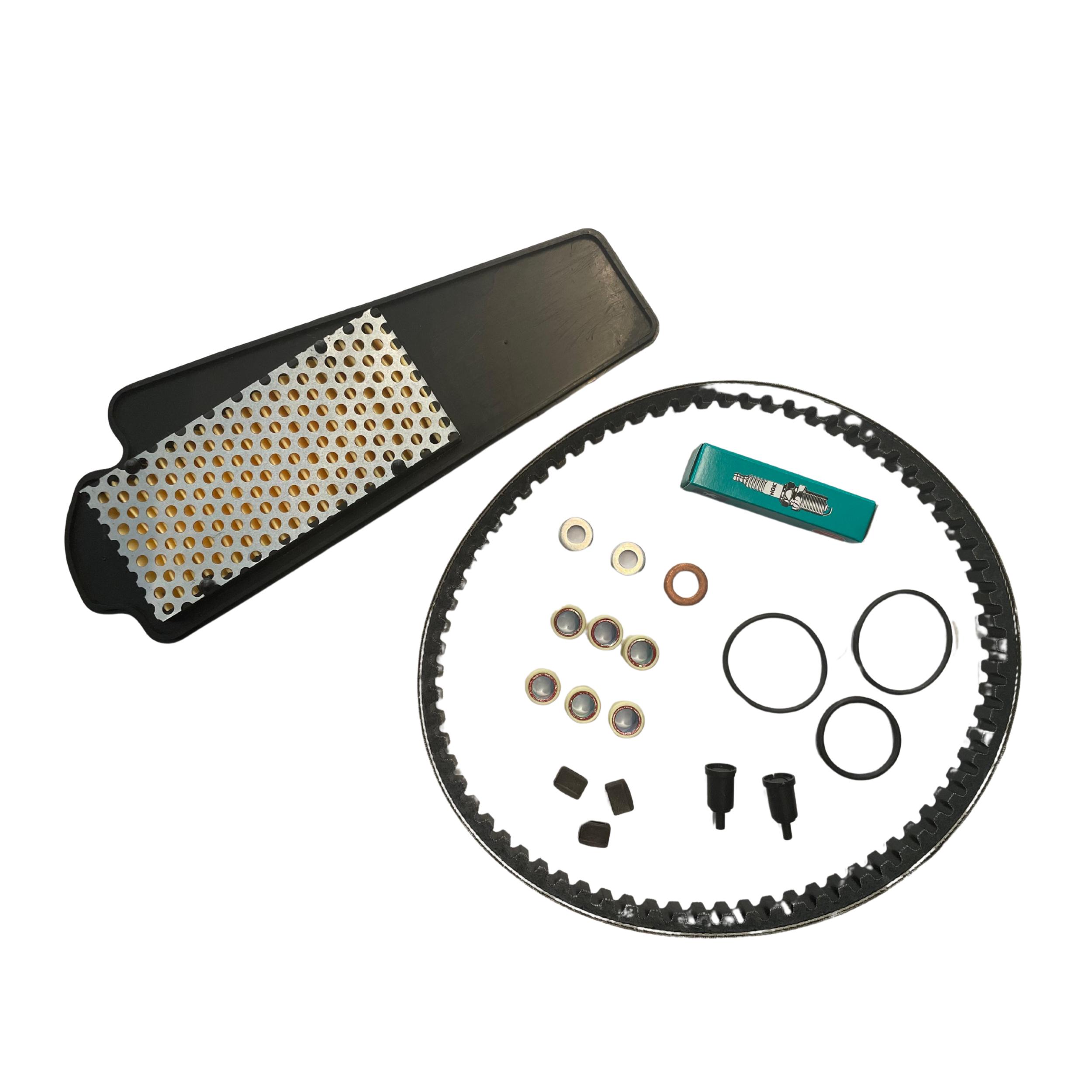 KIT DE REVISION ORIGINAL PARA PEUGEOT TWEET 50 E4 , COMPUESTO DE FILTRO DE AIRE, BUJIA, CORREA, RODILLOS, GUIAS, TORICAS Y ARANDELAS DE VACIADOS.